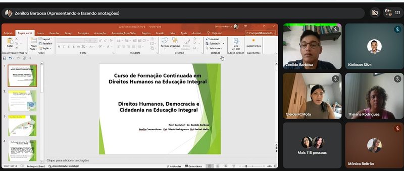No último sábado, 25/04, foi realizado o primeiro encontro síncrono da Formação Continuada em Direitos Humanos na Educação Integral, reunindo educadores e profissionais comprometidos com a construção de uma sociedade mais justa, inclusiva e democrática.
